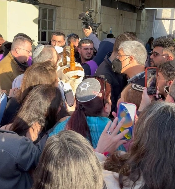 Last week, while visiting Israel for a Rabbinic conference, I went to the Western Wall on Rosh Chodesh morning to support Women of the Wall. This group of women has been meeting at the Kotel for decades in order to pray together – they sing, read from the Torah, wear tallit and tefillin, and celebrate the new moon with a beautiful, musical service. Not being a woman, I can’t pray with the group on the women’s side, but I did join with a group of men who were there to support and to help bring in a Torah scroll (since the Haredi rules of the Kotel forbid the women from bringing a Torah into the holy place). What I experienced that morning was exceedingly disturbing. Our group of dozens of worshippers was first barred from entering the Kotel. Ultimately, after being let in, we travelled as a tight pack, surrounding Rabbi (and Member of Knesset) Gilad Kariv who was holding the Torah scroll, while trying to fend off a mob of Haredi youth who surrounded us, blowing whistles and shouting over us and chanting at us that “Amalek will be wiped out!”